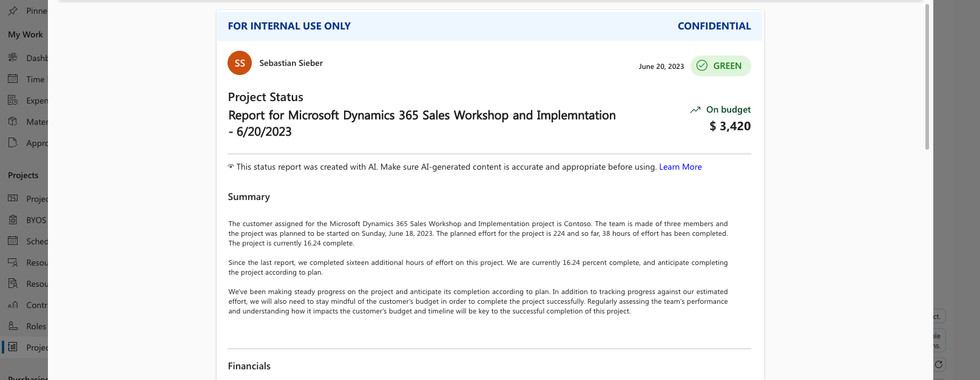 My personal highlight for this Copilot / AI integration on the Project. The Status Report. It comes in two variations: internal and external.